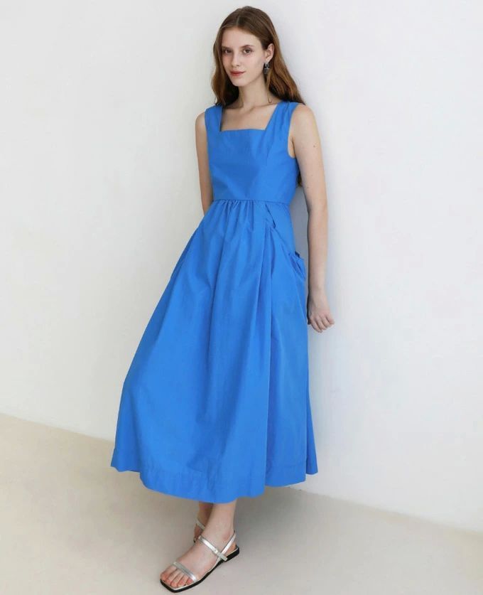 Con un favorecedor escote cuadrado, tirantes anchos y prácticos bolsillos laterales, esta silueta midi aireada es tu prenda ideal para los días cálidos, ya sea que estés en la ciudad o de vacaciones.