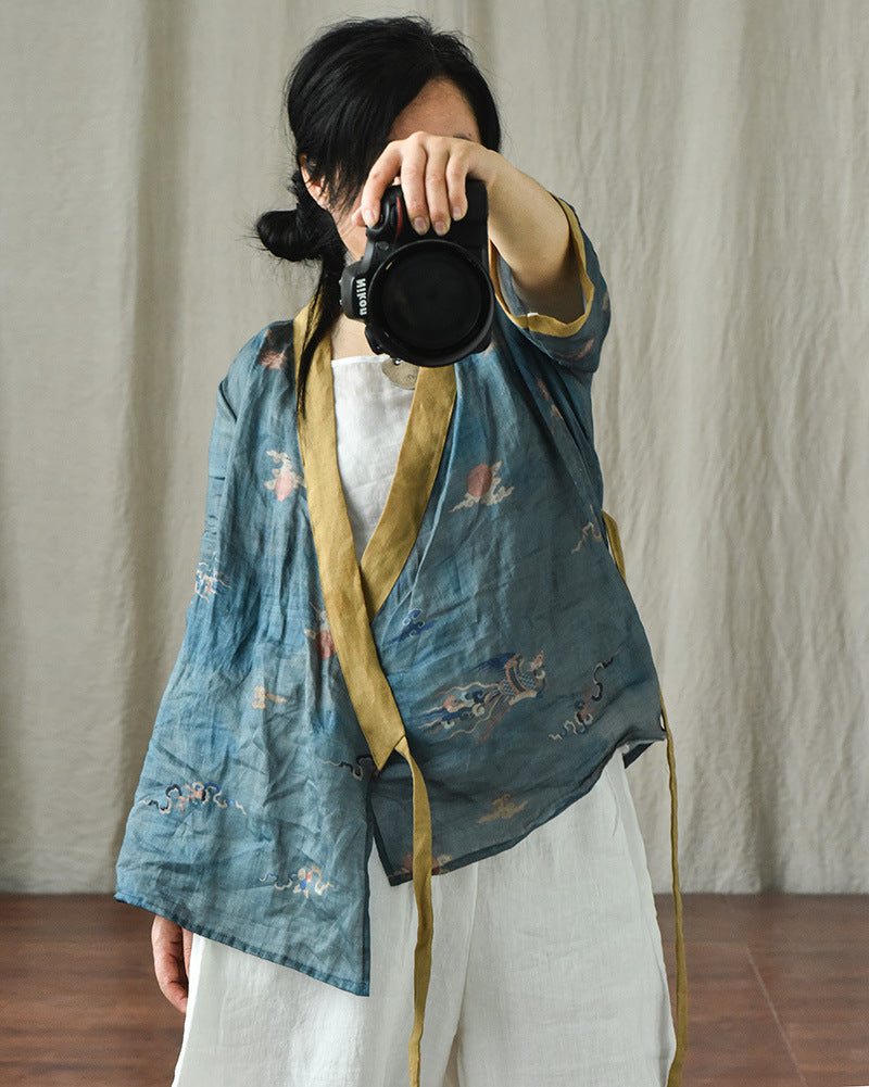 Adopta la elegancia natural con la blusa Bohemian Bloom Wrap Rami , confeccionada en tejido 100 % rami puro. Ligera y transpirable, esta blusa garantiza comodidad durante todo el día con un estilo bohemio atemporal. El cierre cruzado y los delicados estampados florales crean un look chic y desenfadado, convirtiéndola en una prenda versátil tanto para el día a día como para ocasiones especiales. Con su corte holgado y mangas largas, es la opción perfecta para looks de inspiración vintage y estilo bohemio.
