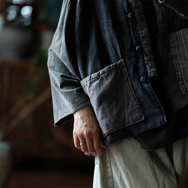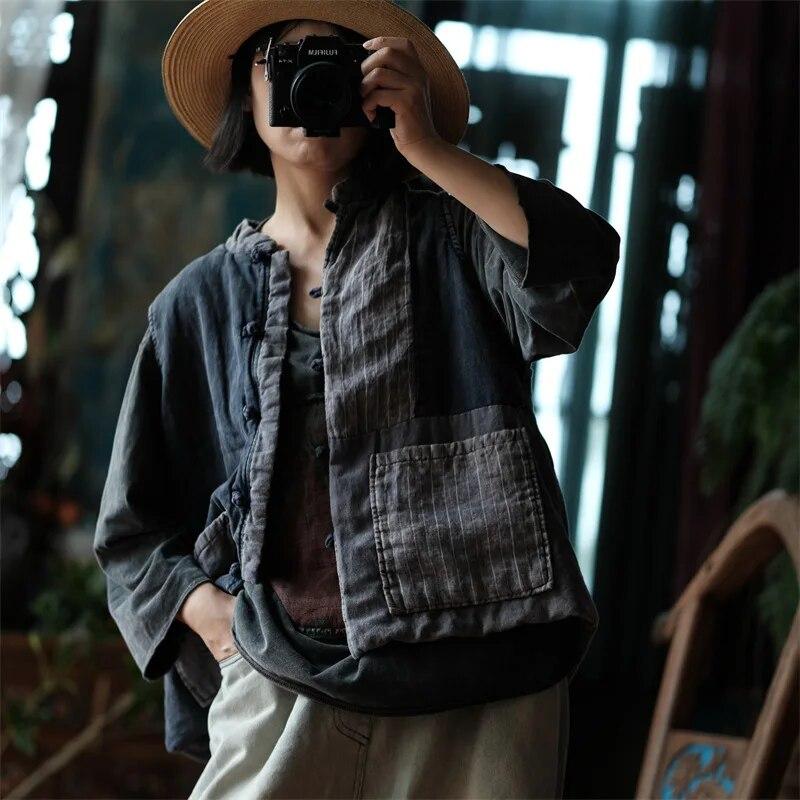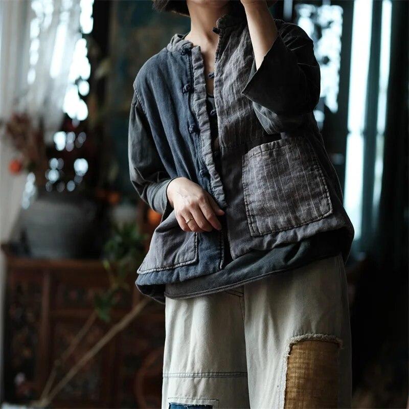 El chaleco de rayas de algodón y lino combina comodidad natural con elegancia atemporal. Confeccionado con una mezcla de 50 % algodón y 50 % lino, ofrece durabilidad y transpirabilidad, lo que lo hace perfecto para combinar con otras prendas en cualquier temporada. El detalle de patchwork a rayas en el bolsillo le da un toque vintage, mientras que el cierre de botones sencillo le da un look clásico y versátil.