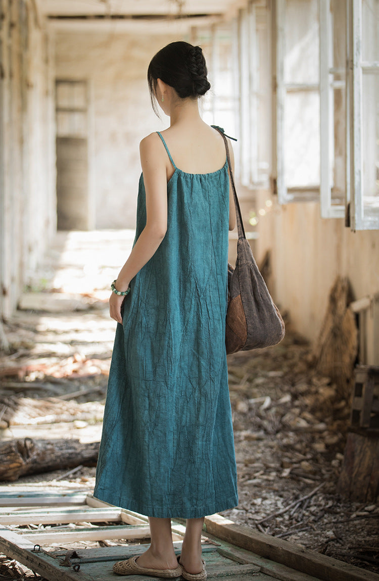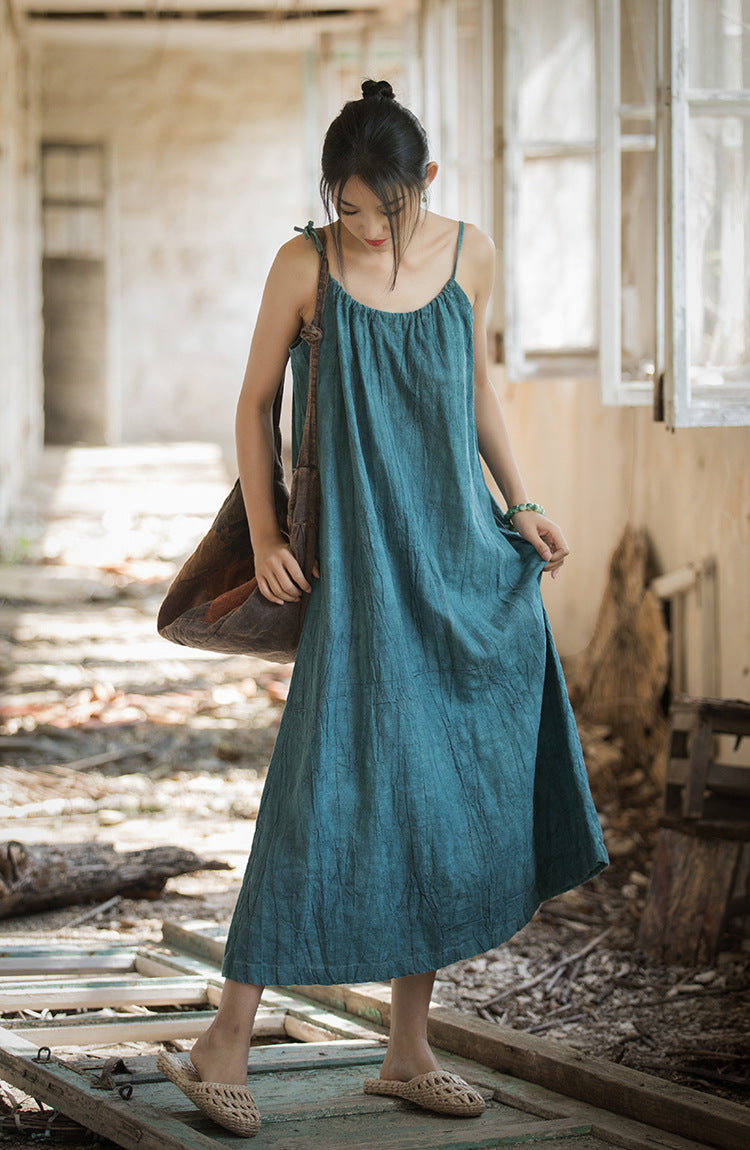 Disfruta de la simplicidad con elegancia. El vestido Ramie Breeze está confeccionado con tejido 100 % ramio, ofreciendo una transpirabilidad natural y una sensación de suavidad al tacto. Sus tirantes ajustables y su silueta fluida de largo midi lo hacen elegante y cómodo. Perfecto para días relajados de verano, paseos vacacionales o para combinar con otras prendas en la ciudad: es una prenda atemporal para quienes valoran la belleza y la gracia natural.