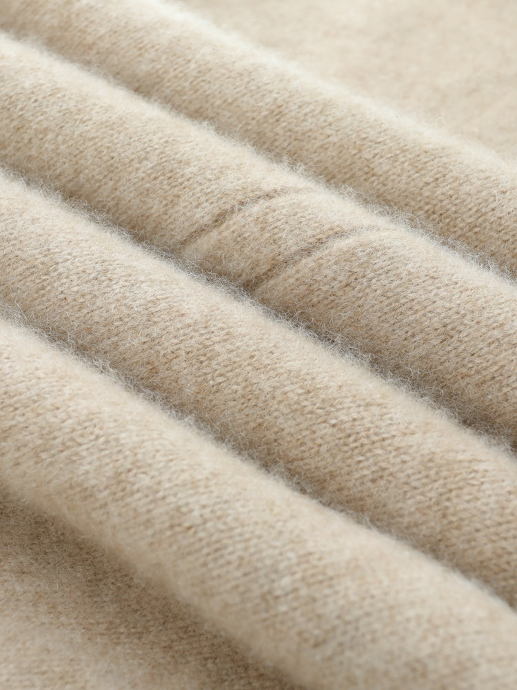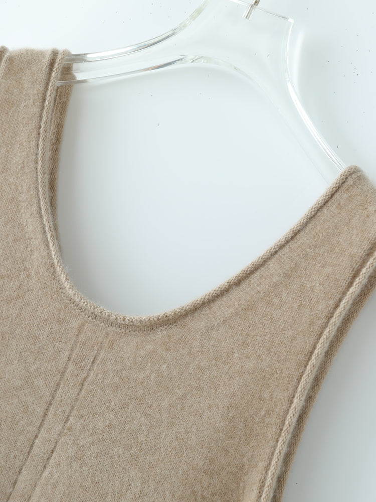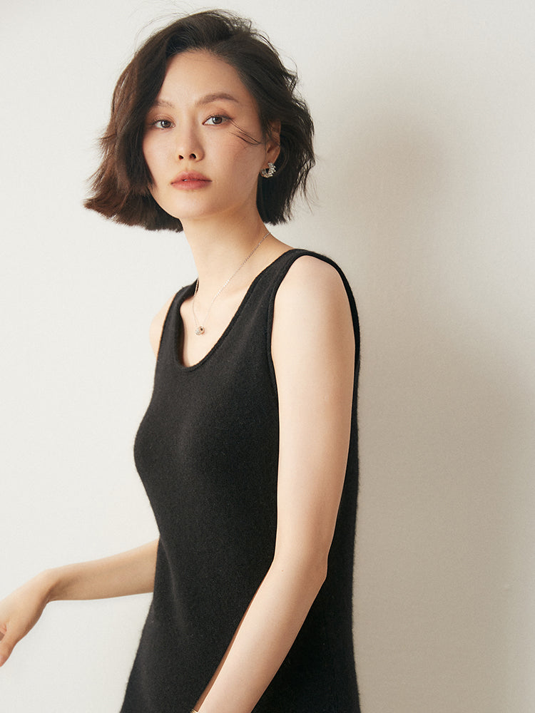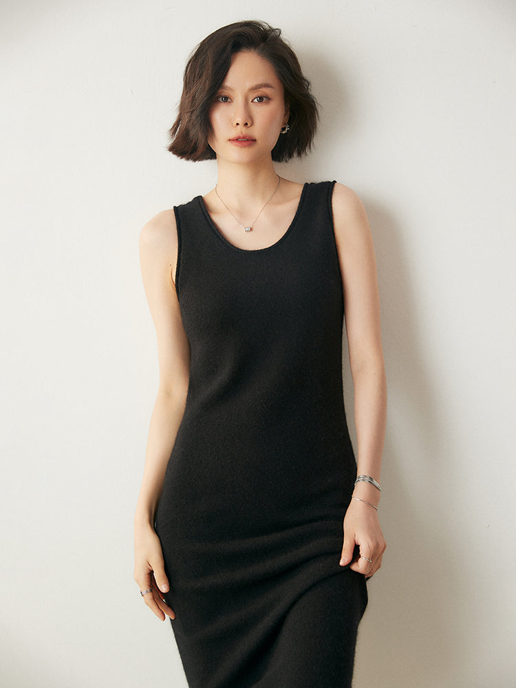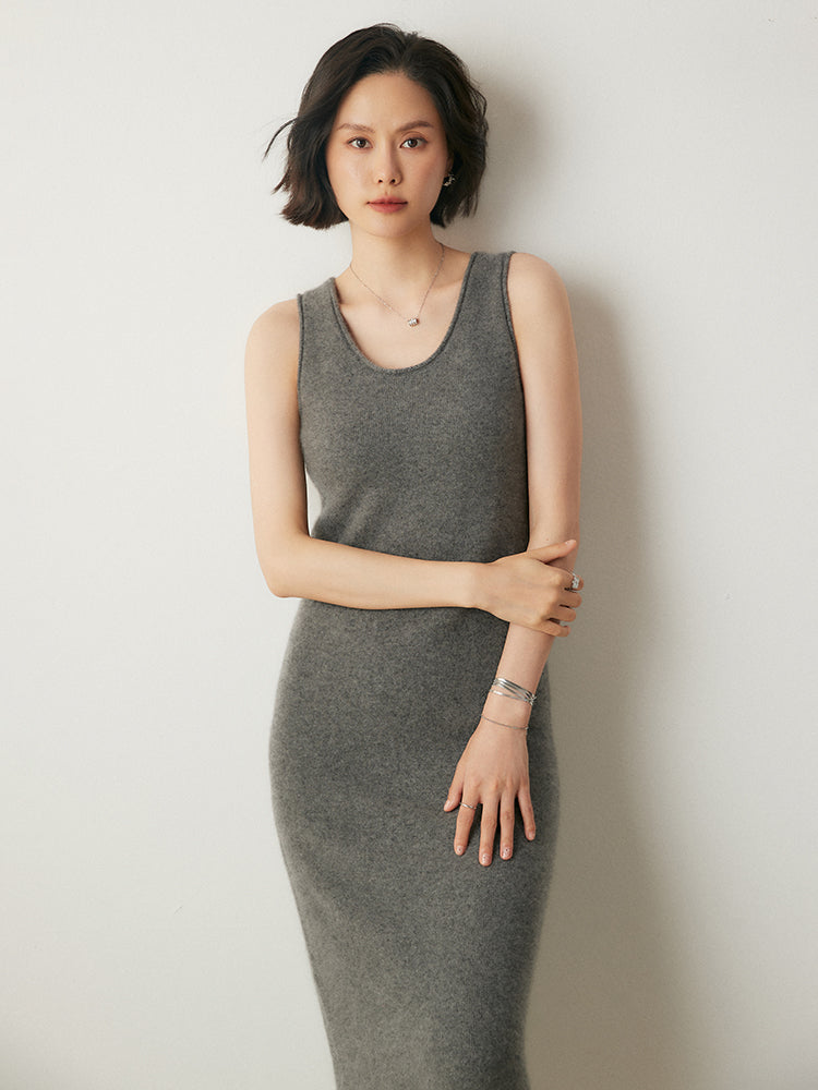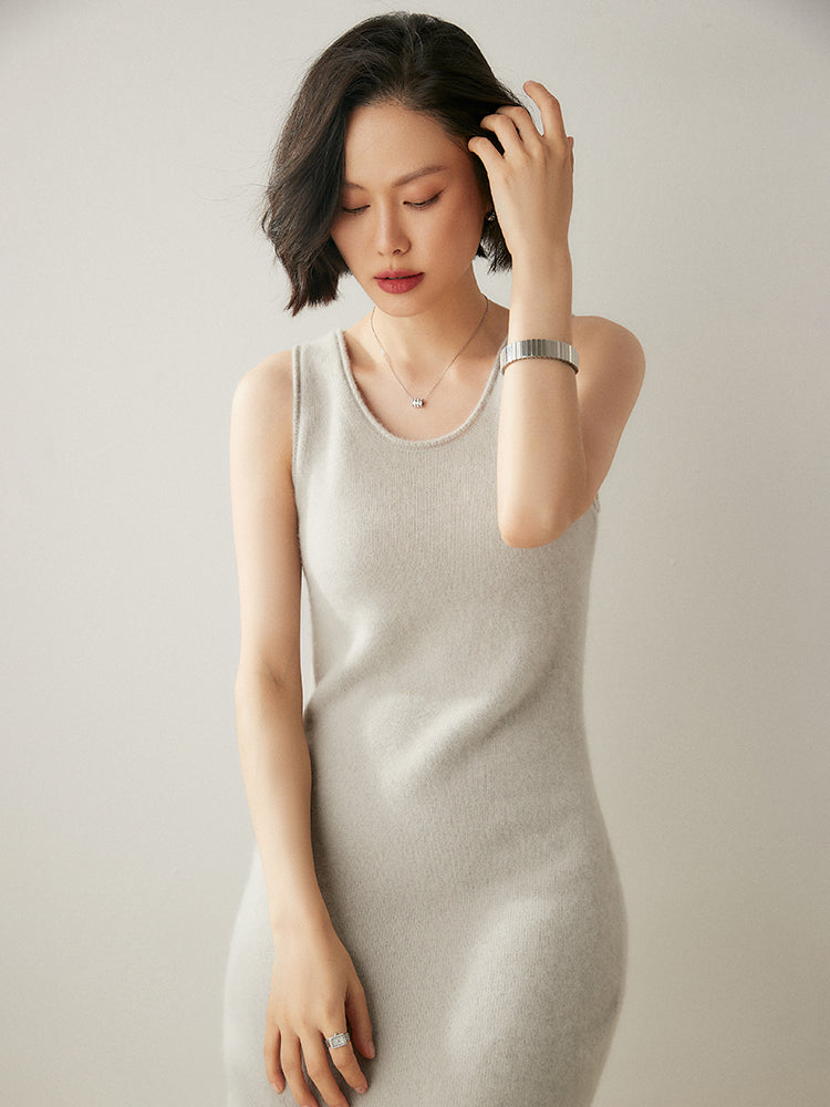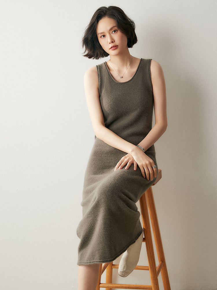 El vestido Cozy Luxe, confeccionado con una lujosa mezcla de 35 % cachemira y 65 % lana, combina elegancia y comodidad. Su textura suave y ligera te mantiene abrigada durante los días fríos, mientras que el diseño sin mangas y el escote en U añaden un toque de sofisticación. El largo midi lo hace versátil tanto para uso diario como para ocasiones especiales.