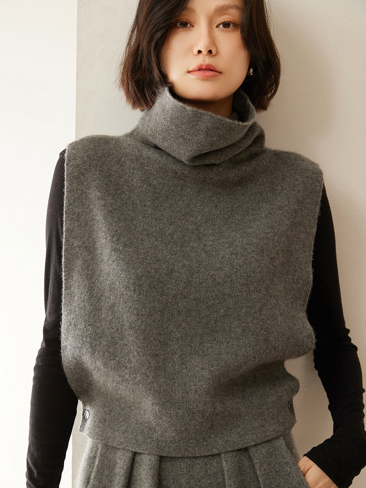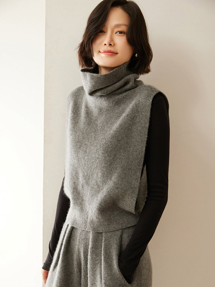 La elegante blusa de punto con cuello alto ofrece un estilo refinado y sofisticado con su mezcla de 35 % cachemira y 65 % lana. Su diseño de cuello alto brinda calidez, mientras que la silueta sin mangas y los detalles de botones laterales agregan un toque moderno. Perfecta para quienes buscan una combinación de estética clásica y contemporánea, esta blusa se puede usar sola para un look elegante o con capas sin esfuerzo para un estilo versátil. ¡Una excelente opción para agregar elegancia a tu guardarropa de todos los días!