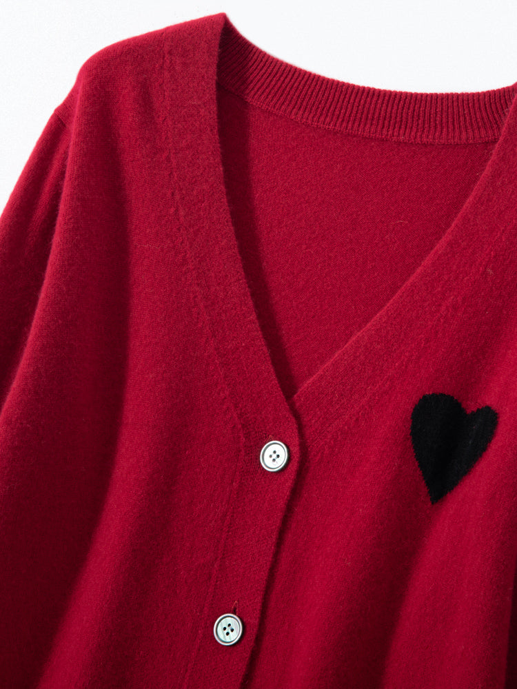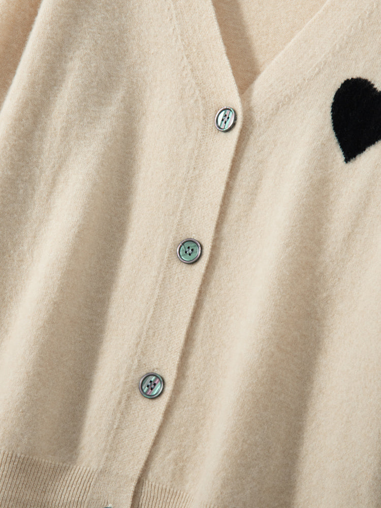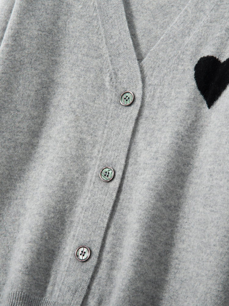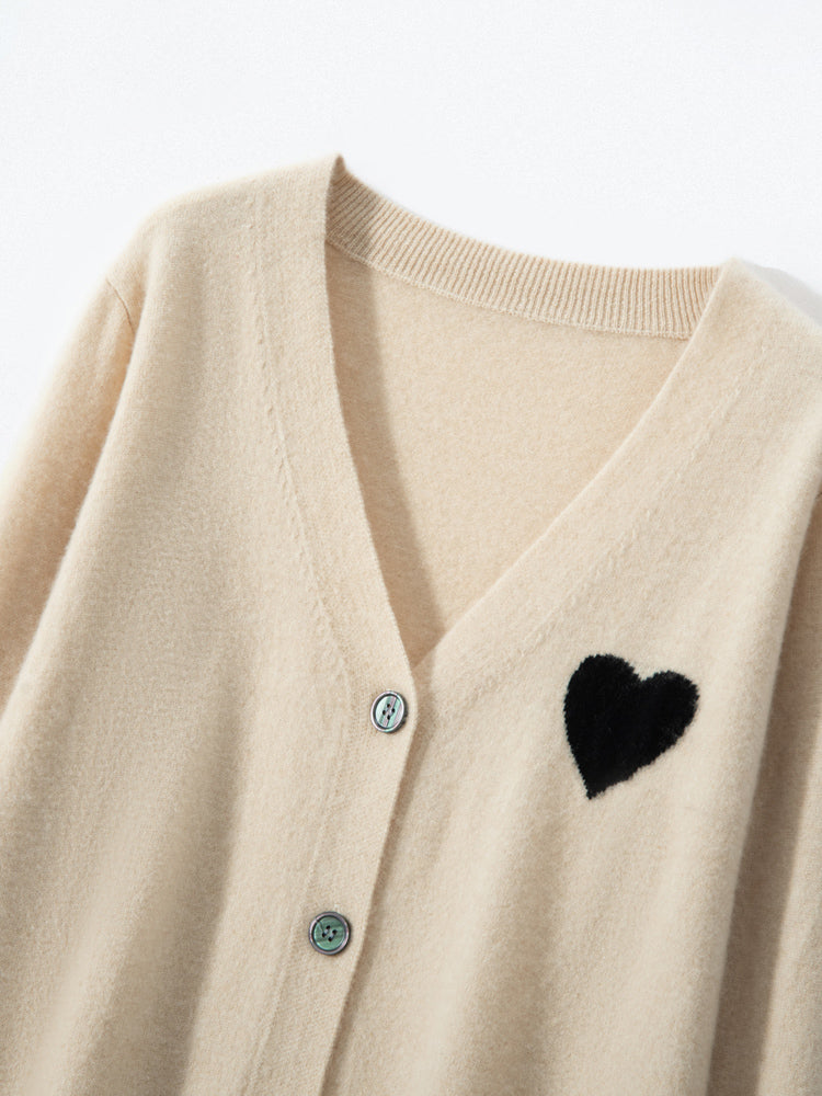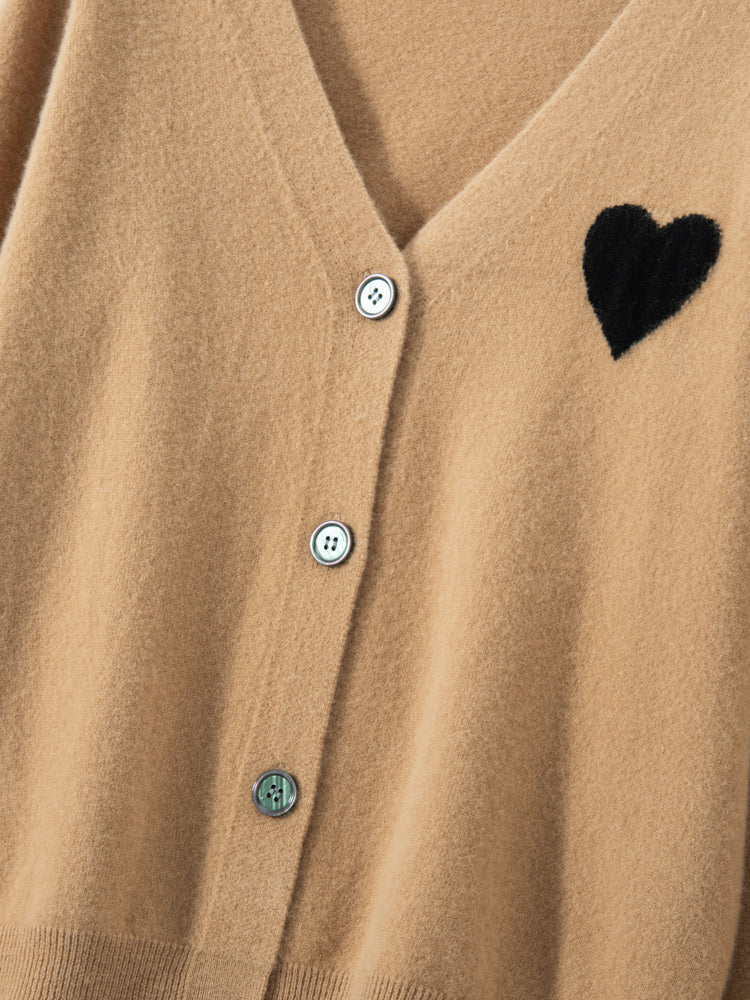 El cárdigan de cachemira Heartline, confeccionado con una lujosa mezcla de 35 % cachemira y 65 % lana , combina elegancia y calidez para los días más fríos. Su diseño de escote en V con cierre de botones en la parte delantera ofrece un estilo atemporal, mientras que el detalle en forma de corazón en el cuello añade un toque romántico y único. Con mangas largas y una textura suave, este cárdigan es perfecto tanto para salidas informales como para ocasiones especiales. Disponible en una variedad de tallas para garantizar un ajuste favorecedor para todas, está destinado a convertirse en un básico en tu armario.