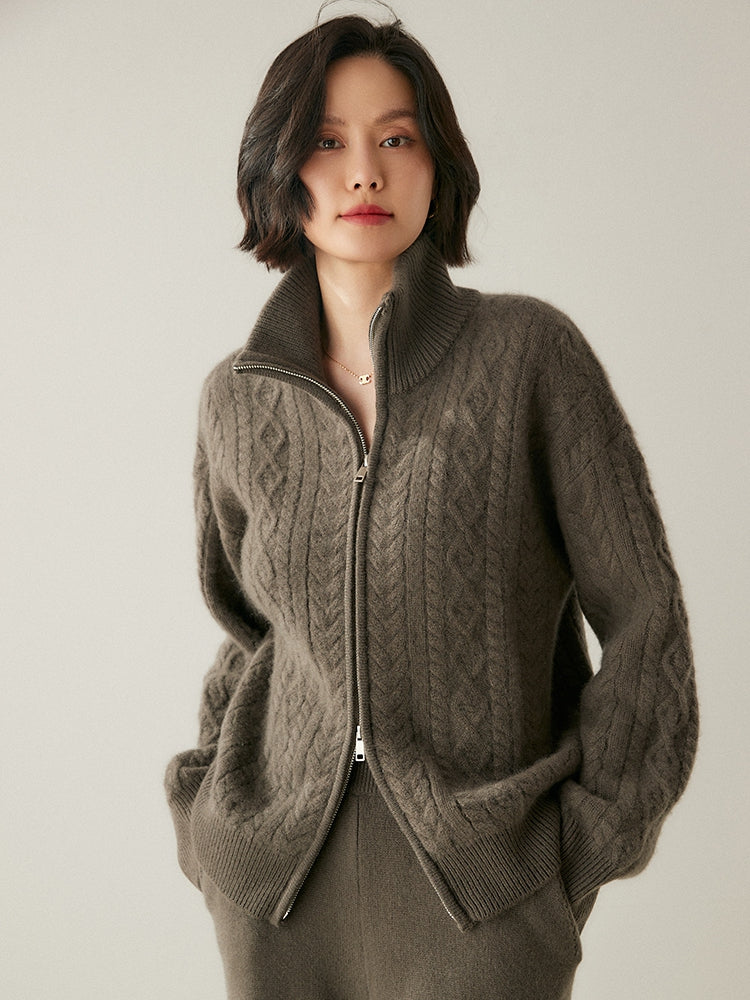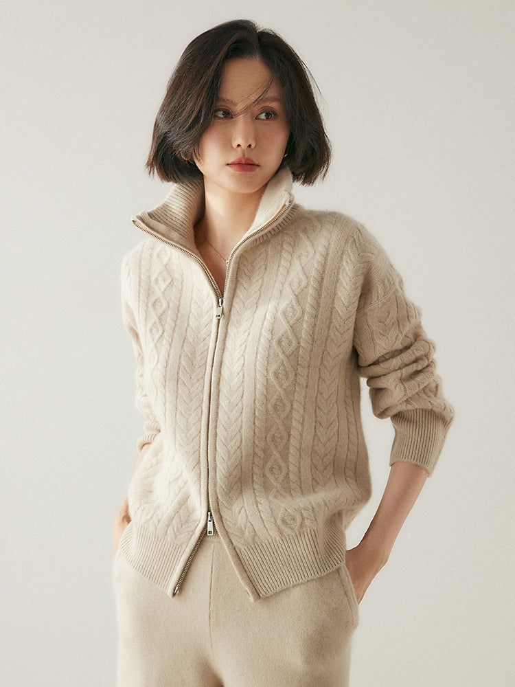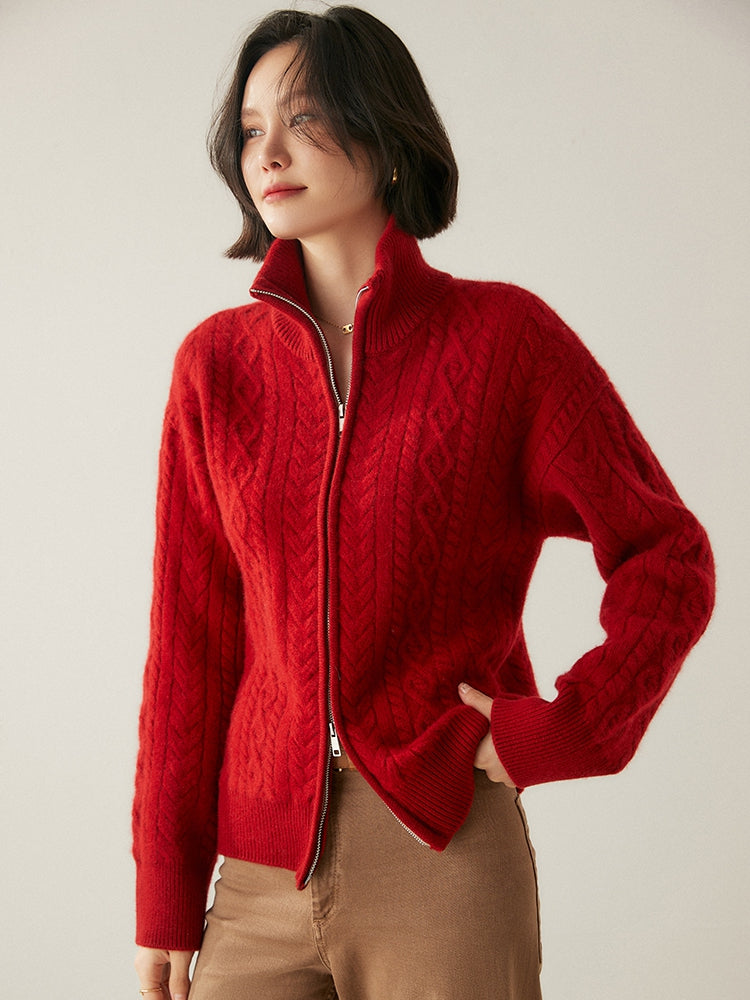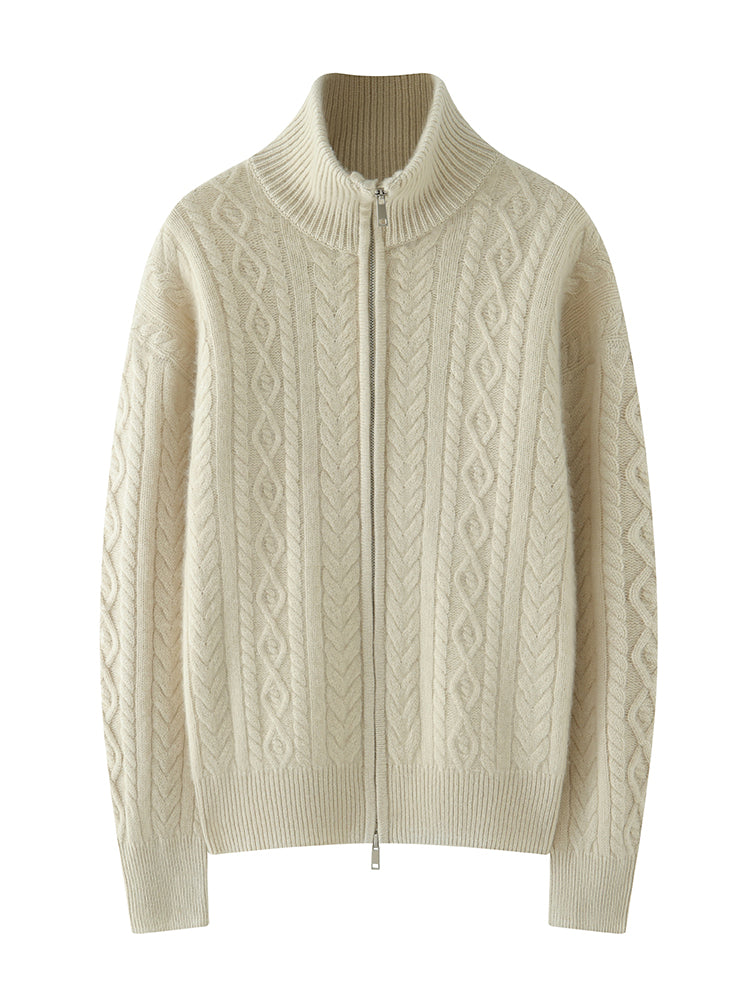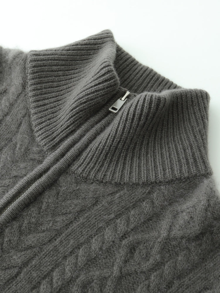 Experimente la elegancia y la calidez atemporales con el cárdigan Heritage Cashmere Blend , que presenta patrones de punto de inspiración vintage que exudan encanto clásico. Este cárdigan de manga larga viene con un cuello elegante y un práctico cierre de cremallera, que ofrece sofisticación y funcionalidad. Confeccionado con una lujosa mezcla de 35 % cachemira y 65 % lana, cuenta con una textura suave y una calidad superior que se destacan.