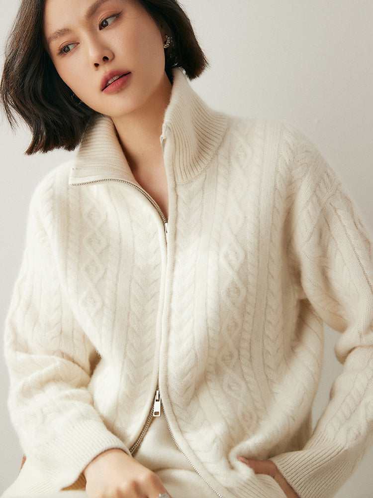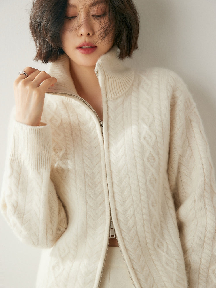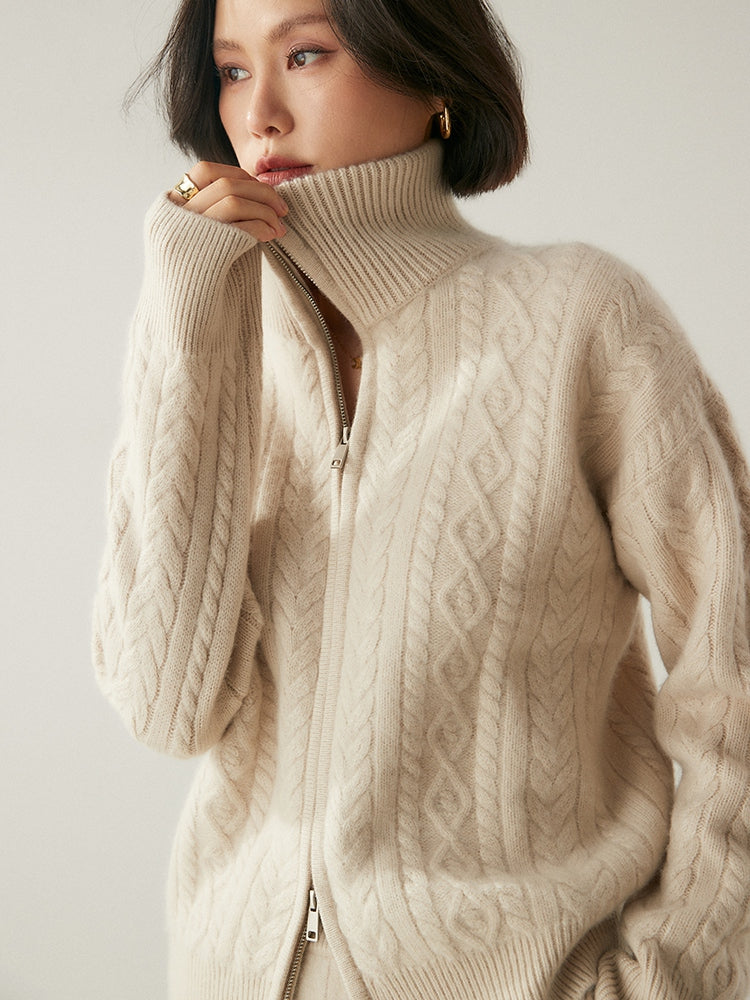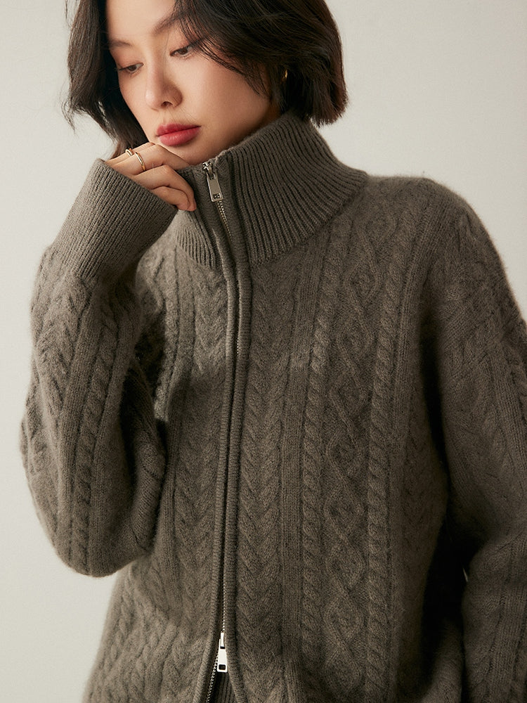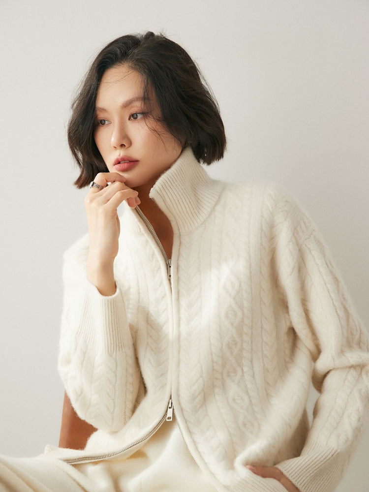 Experimente la elegancia y la calidez atemporales con el cárdigan Heritage Cashmere Blend , que presenta patrones de punto de inspiración vintage que exudan encanto clásico. Este cárdigan de manga larga viene con un cuello elegante y un práctico cierre de cremallera, que ofrece sofisticación y funcionalidad. Confeccionado con una lujosa mezcla de 35 % cachemira y 65 % lana, cuenta con una textura suave y una calidad superior que se destacan.