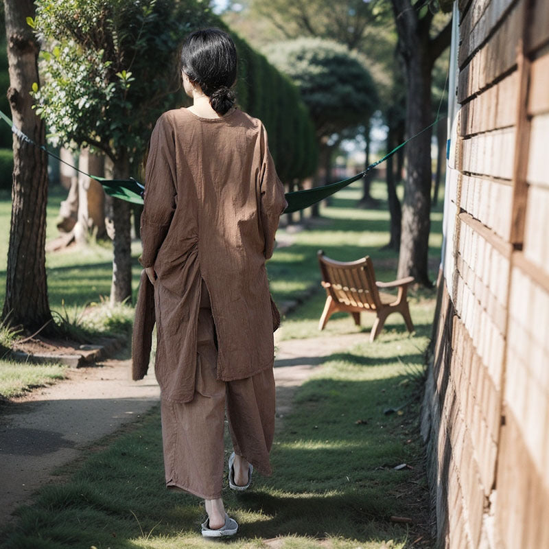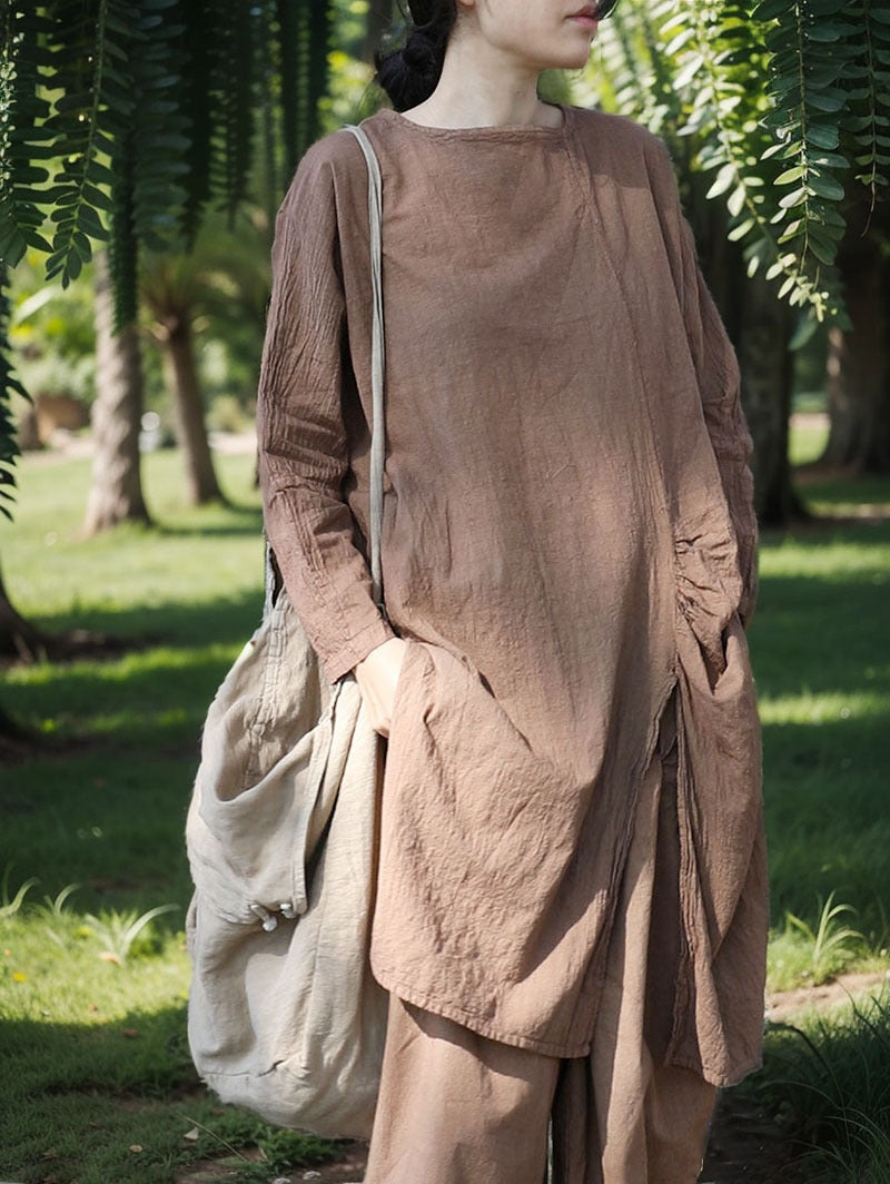 Blusa de algodón y lino con abertura larga