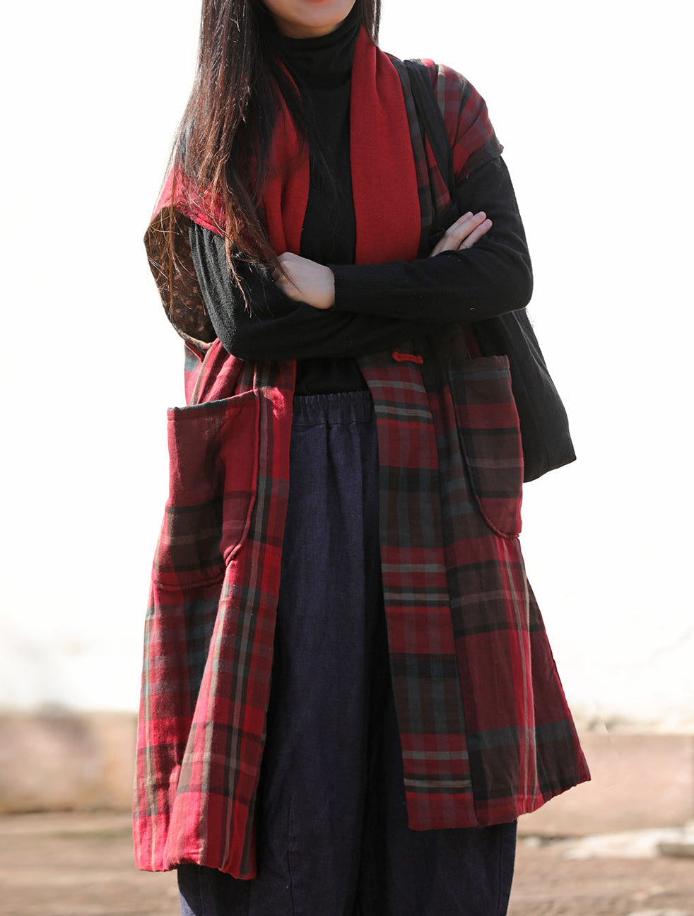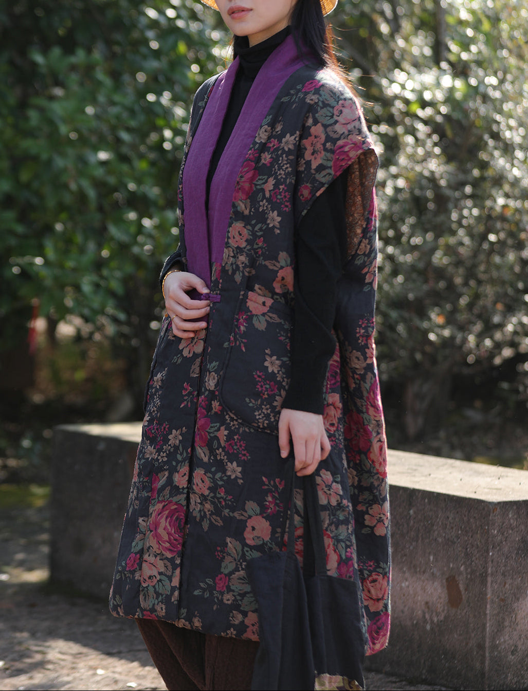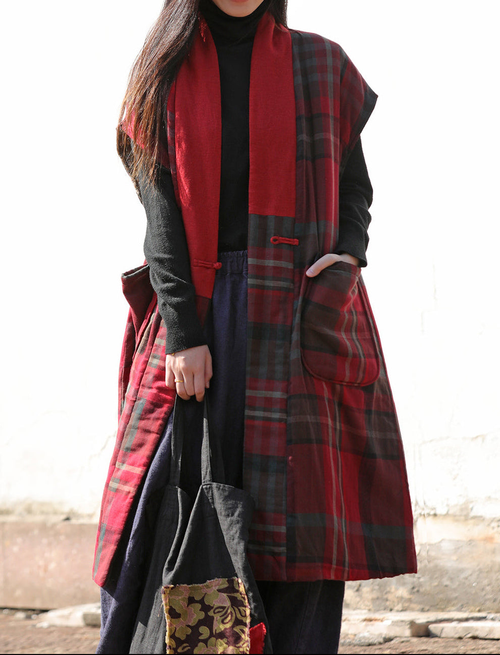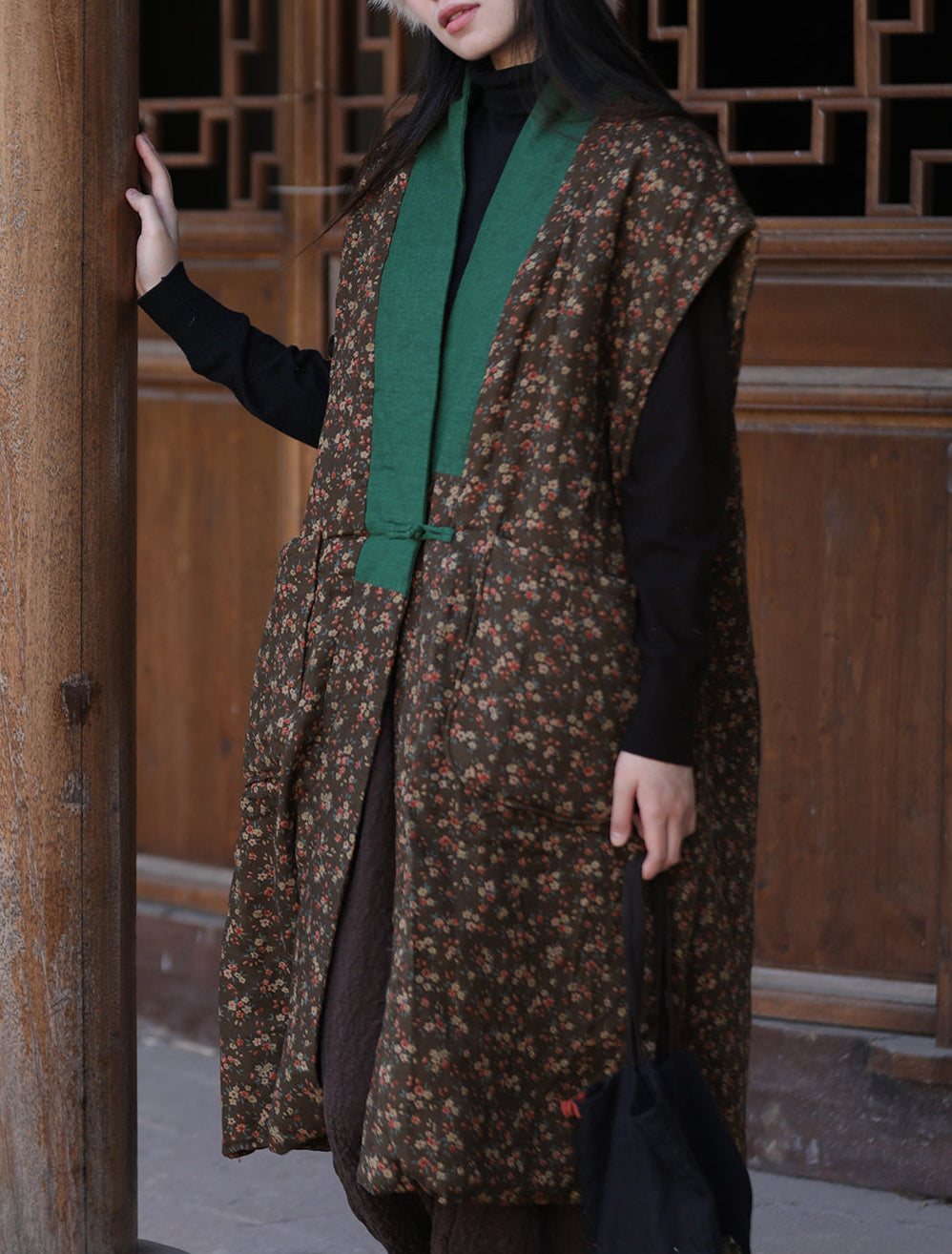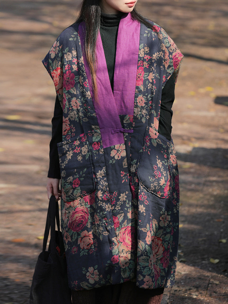 Chaleco étnico retro de algodón acolchado, sin mangas y forrado de seda.