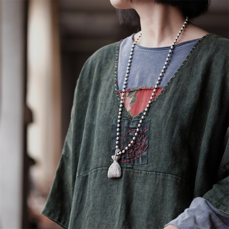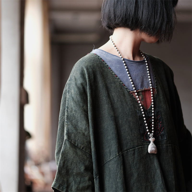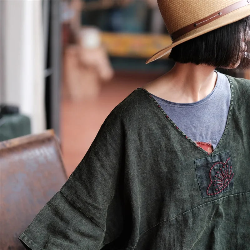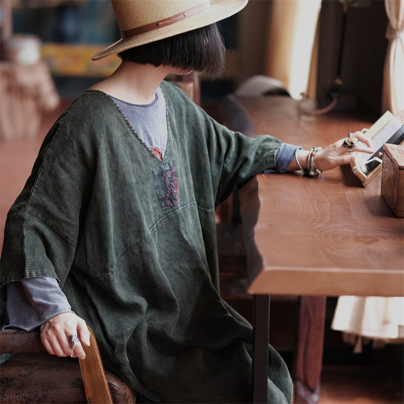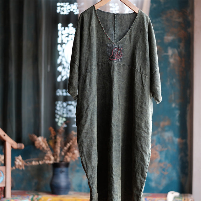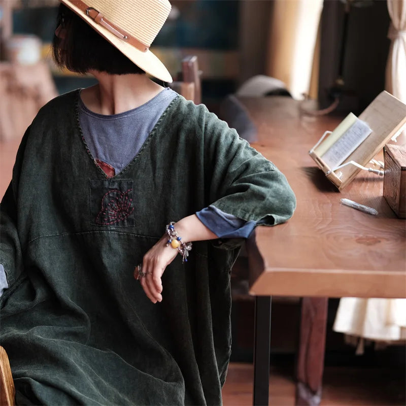 La elegancia atemporal se fusiona con el encanto artesanal en el vestido túnica Vintage Aura . Esta prenda fluida presenta un delicado detalle bordado a mano en el escote , realzando su estilo vintage . Con un favorecedor escote en V y mangas murciélago , ofrece libertad y feminidad en una silueta desenfadada . Llévalo como túnica o vestido : perfecto para un estilo versátil en cualquier temporada .