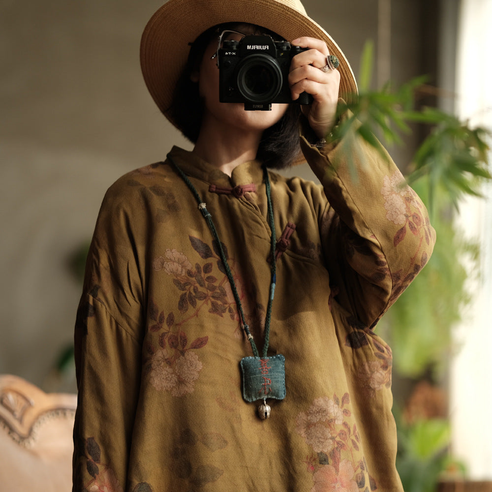 Con un corte holgado y tejido transpirable, esta túnica puede transformarse fácilmente de un look casual para el día a un vestido sofisticado para momentos especiales. Dale un toque de encanto vintage a tu armario con este diseño único y versátil.