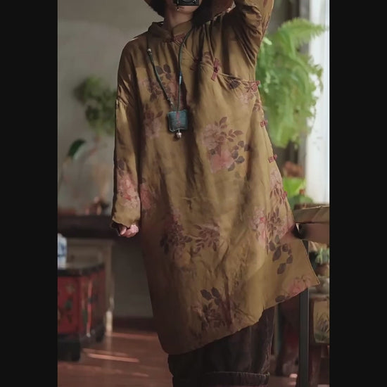 Confeccionado en 100 % algodón puro, el vestido túnica Vintage Bloom con detalle de botones combina una elegancia atemporal con una funcionalidad versátil. Con delicados estampados florales y botones forrados en tela en los laterales y la parte delantera, esta prenda irradia una encantadora estética vintage. Su diseño de doble capa con suave relleno de algodón garantiza comodidad y calidez, lo que lo hace perfecto para los días más fríos.