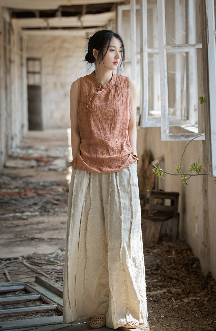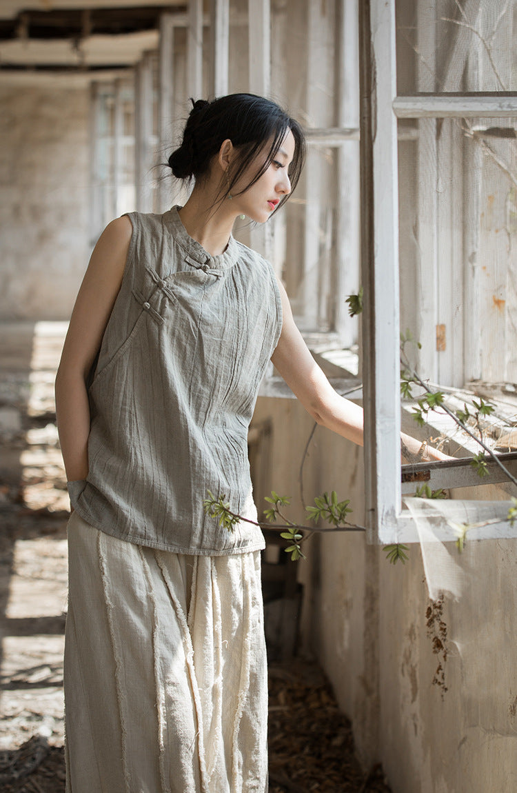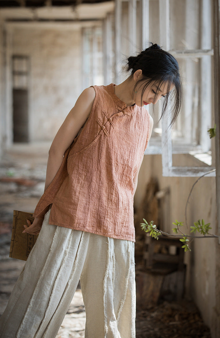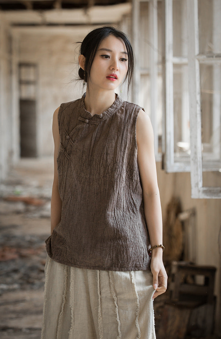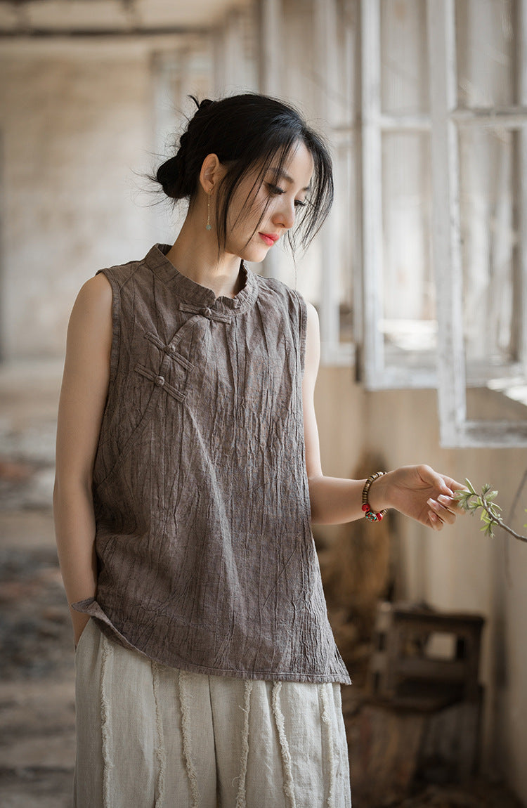 La blusa Vintage Cross Linen está confeccionada con lino 100 % natural, ofreciendo una sensación ligera y transpirable, ideal para climas cálidos. Diseñada con un corte sin mangas y detalles únicos de botones cruzados, esta blusa aporta un toque de elegancia vintage a la vez que mantiene un estilo sencillo y natural.