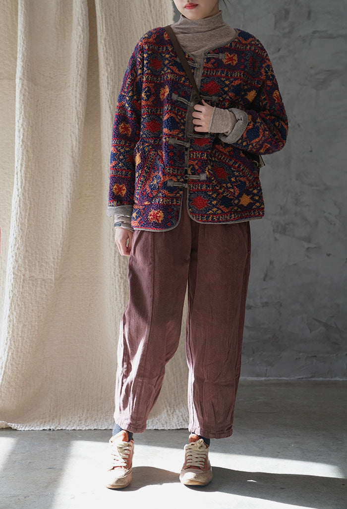 Esta elegante y atemporal chaqueta con estampado étnico vintage es una pieza destacada para tu armario. Con su tejido de grosor medio, es una opción ideal para las estaciones de transición, ofreciendo comodidad y estilo con sus mangas largas y detalles de botones de cuero. Inspirados en los patrones kilim, los diseños étnicos añaden un encanto nostálgico a la chaqueta al tiempo que aportan un toque moderno y único a tus conjuntos de diario. Combinando a la perfección con estilos clásicos y bohemios, esta pieza te hará sentir realmente especial.