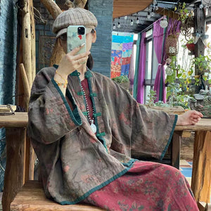 Descripción: Esta chaqueta, confeccionada en tejido 100 % lino, ofrece un aspecto elegante con sus nostálgicos estampados florales y detalles de ribetes en contraste. Los botones confeccionados en el mismo tejido y el corte holgado aportan un toque moderno a la vez que completan tu estilo con inspiraciones vintage. El diseño con bolsillos combina elegancia y funcionalidad, mientras que el corte holgado proporciona comodidad. ¡Esta prenda es perfecta para añadir un toque sofisticado y natural a tus conjuntos diarios!