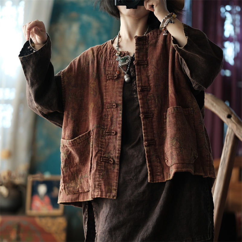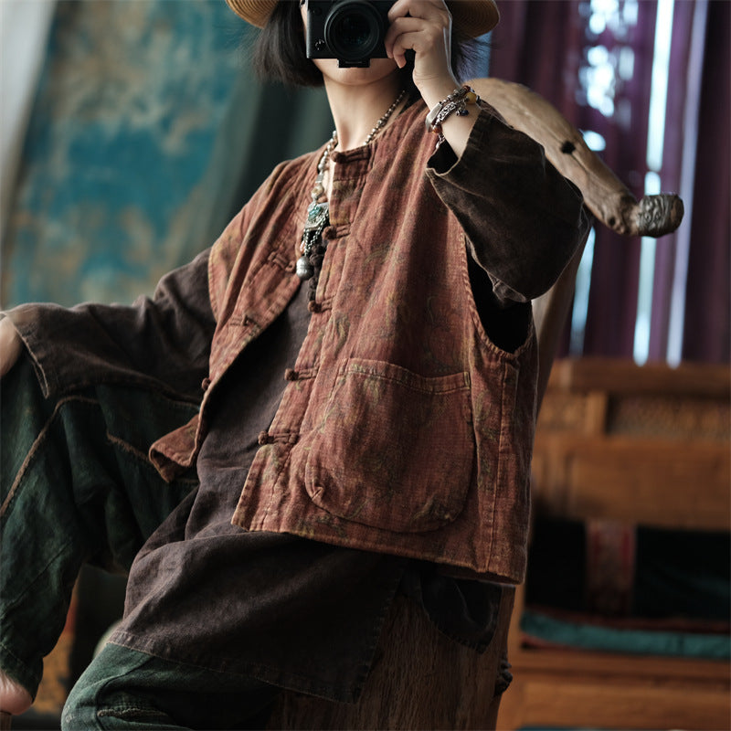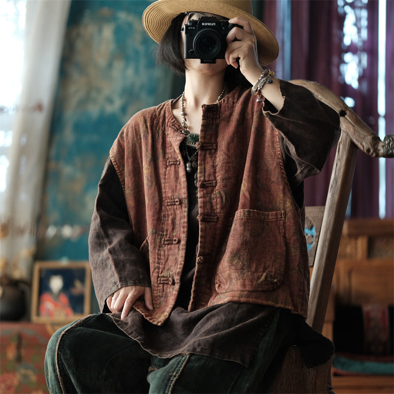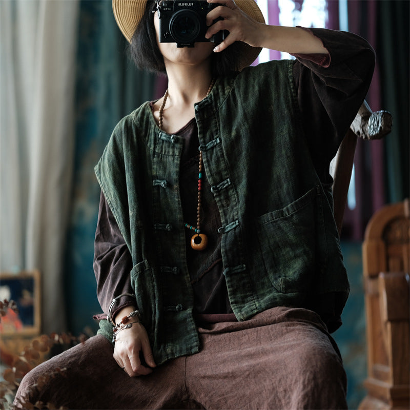 El chaleco floral vintage es una prenda imprescindible para quienes aman el estilo bohemio y atemporal. Hecho de lino transpirable con un delicado estampado floral, este chaleco combina comodidad y sofisticación. Su diseño holgado y versátil te permite usarlo solo o en capas para un look más elegante.