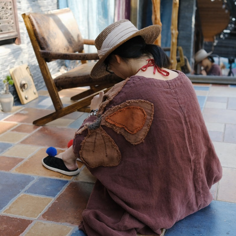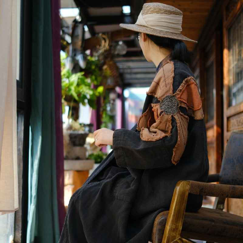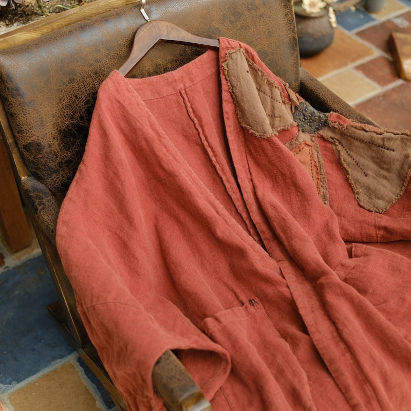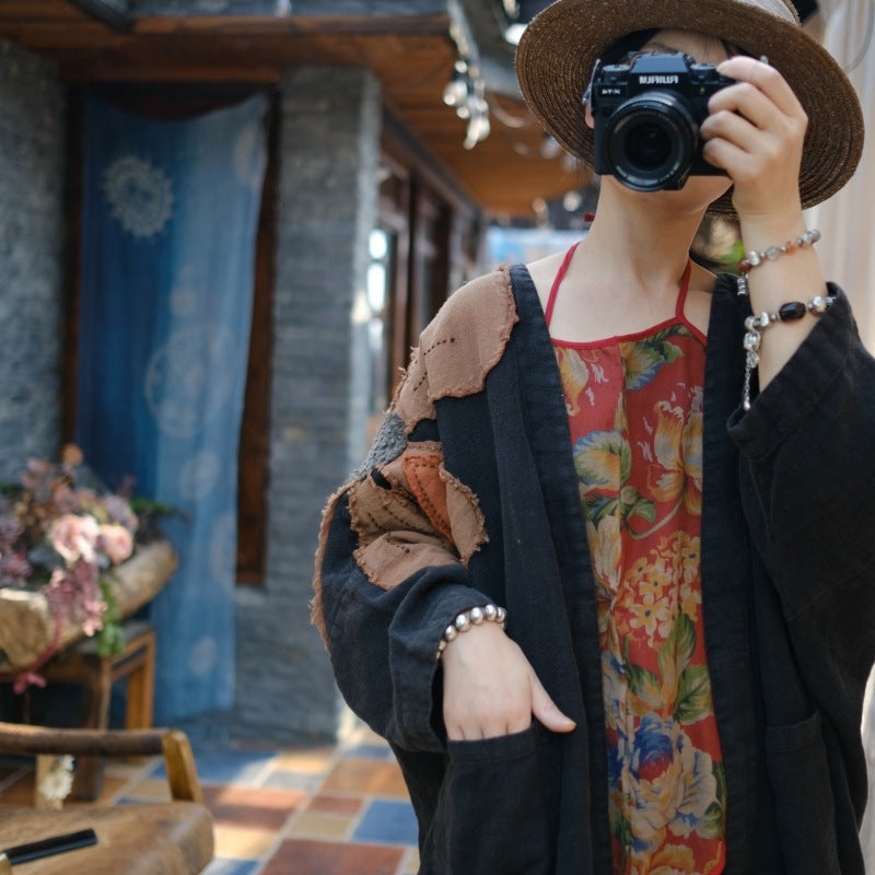 Confeccionado en lino natural, Vintage Patchwork Blossom ofrece una estética atemporal con sus detalles florales de patchwork cuidadosamente colocados. Su silueta relajada y amplia permite usarlo tanto como kimono como chaqueta. Su textura suave, diseño único y estilo bohemio aportan un toque nostálgico a tu estilo diario. Perfecto para combinar con vestidos o completar conjuntos sencillos con una prenda llamativa.