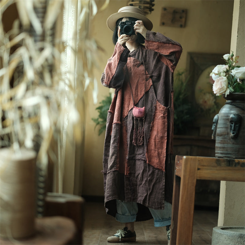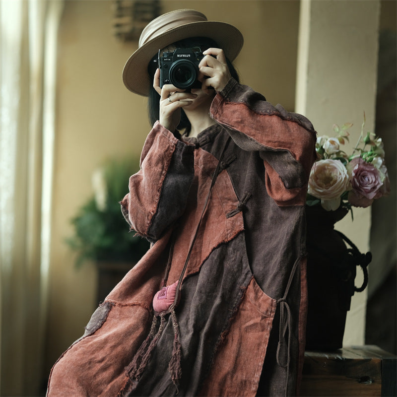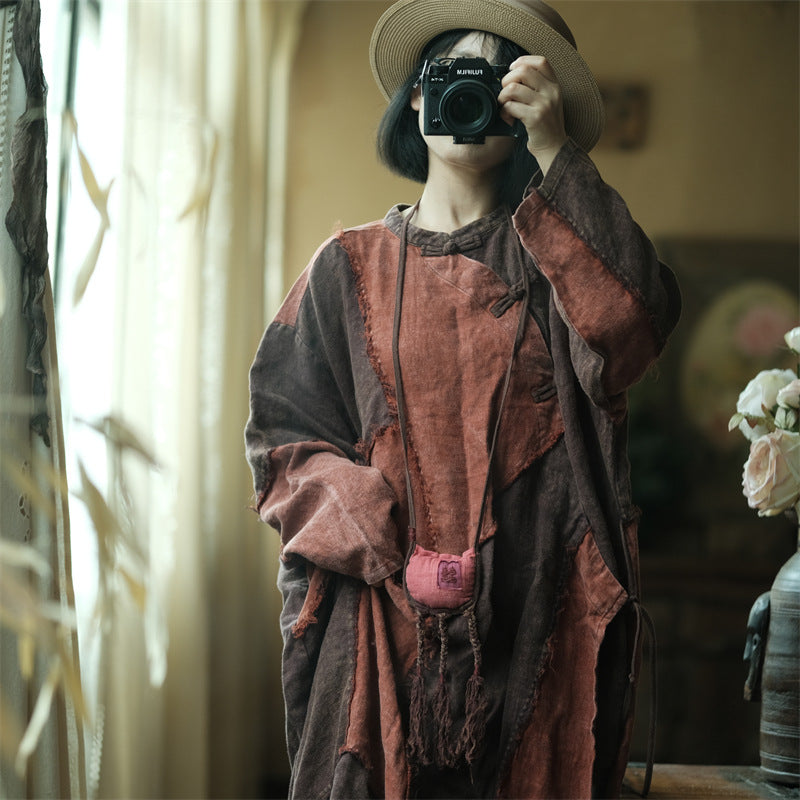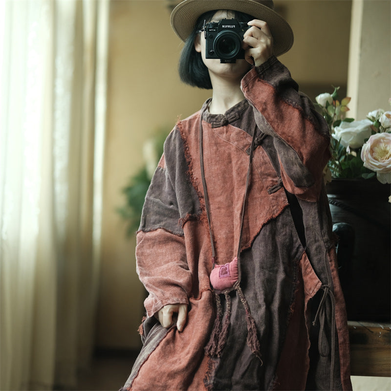 Descripción: El vestido de lino con patchwork vintage combina elegancia y comodidad, lo que lo convierte en una pieza básica en tu colección. Esta elegante túnica de largo midi está confeccionada en lino 100 % y presenta patrones de patchwork únicos que se destacan de manera hermosa. El detalle de lazo lateral agrega estilo y funcionalidad, lo que le da un aspecto único. Además, los cierres de botones hechos del mismo tejido que el vestido túnica reflejan perfectamente su estilo vintage. Adecuada tanto para uso diario como para ocasiones especiales, esta pieza ofrece una elegancia sofisticada y refinada.