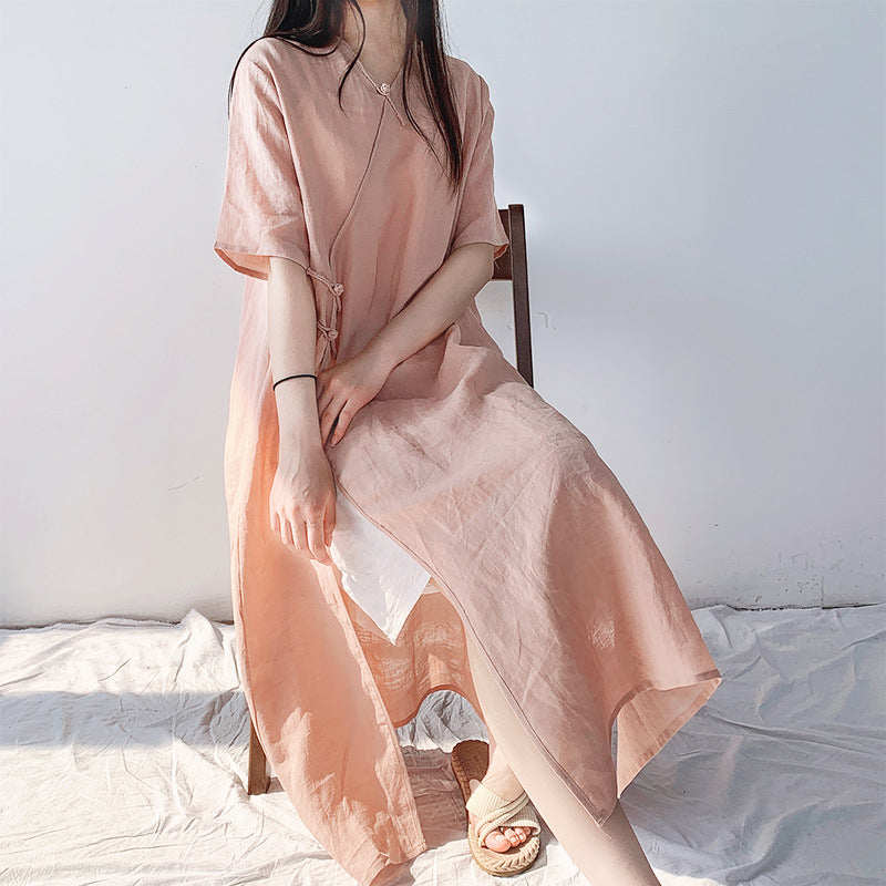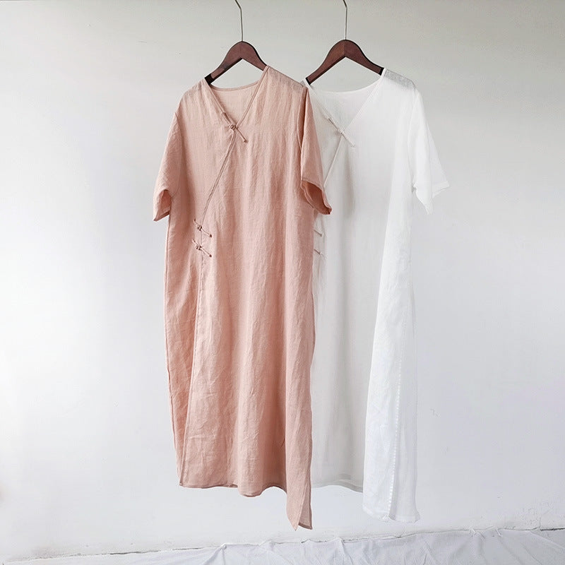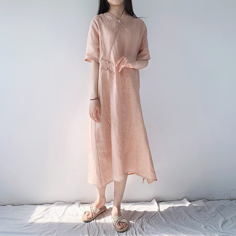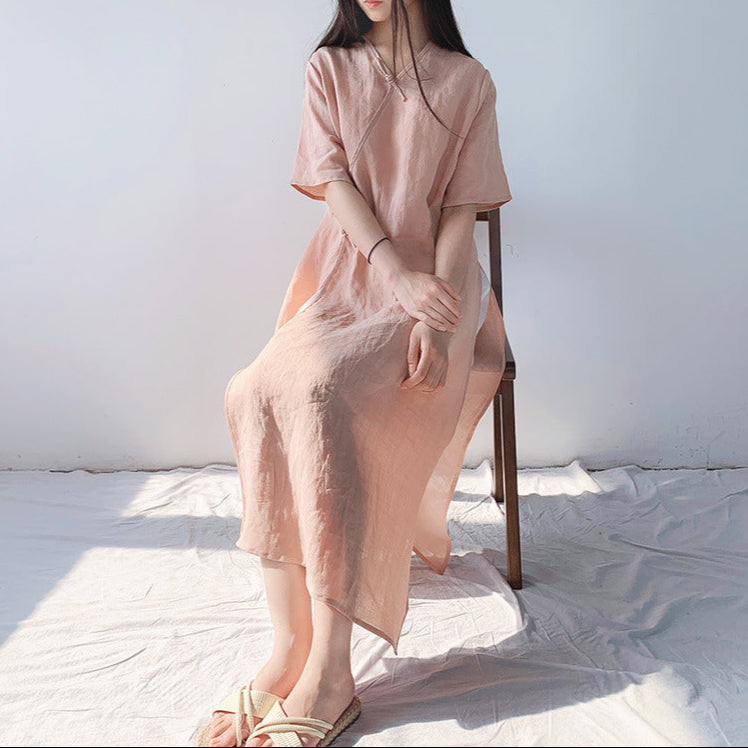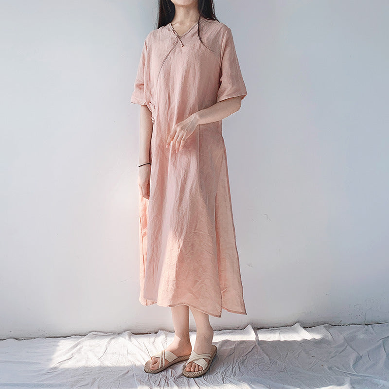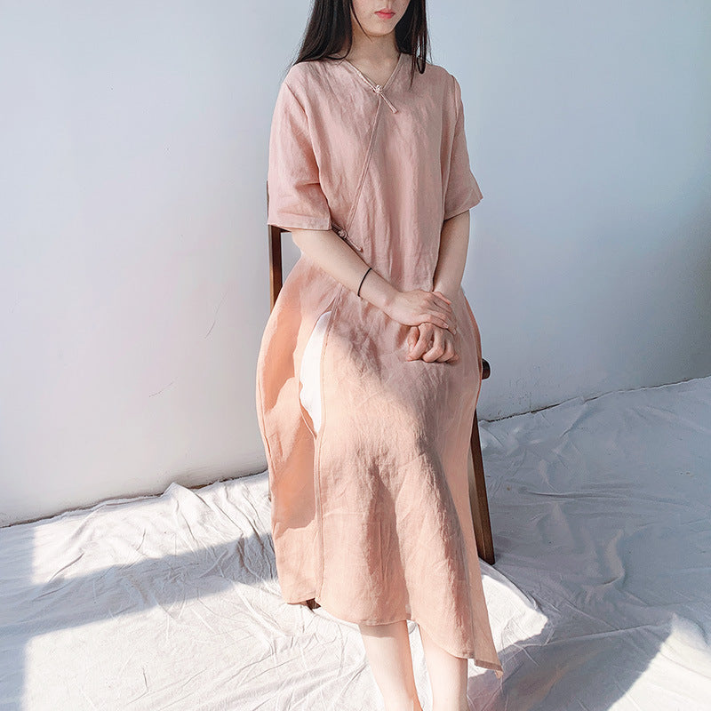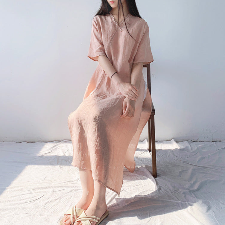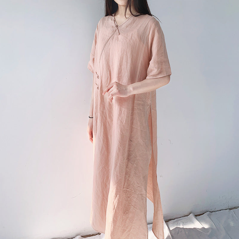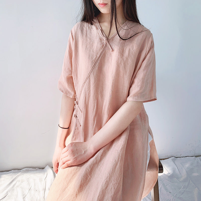 Esta túnica vintage atemporal está confeccionada con tela de rami de primera calidad. Presenta un favorecedor cuello en V y media manga, lo que la convierte en una prenda versátil que combina a la perfección con cualquier look.