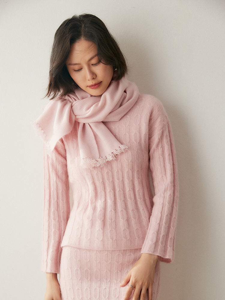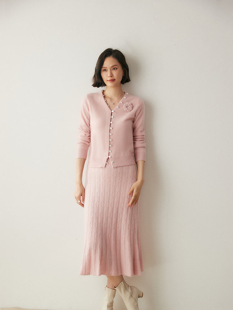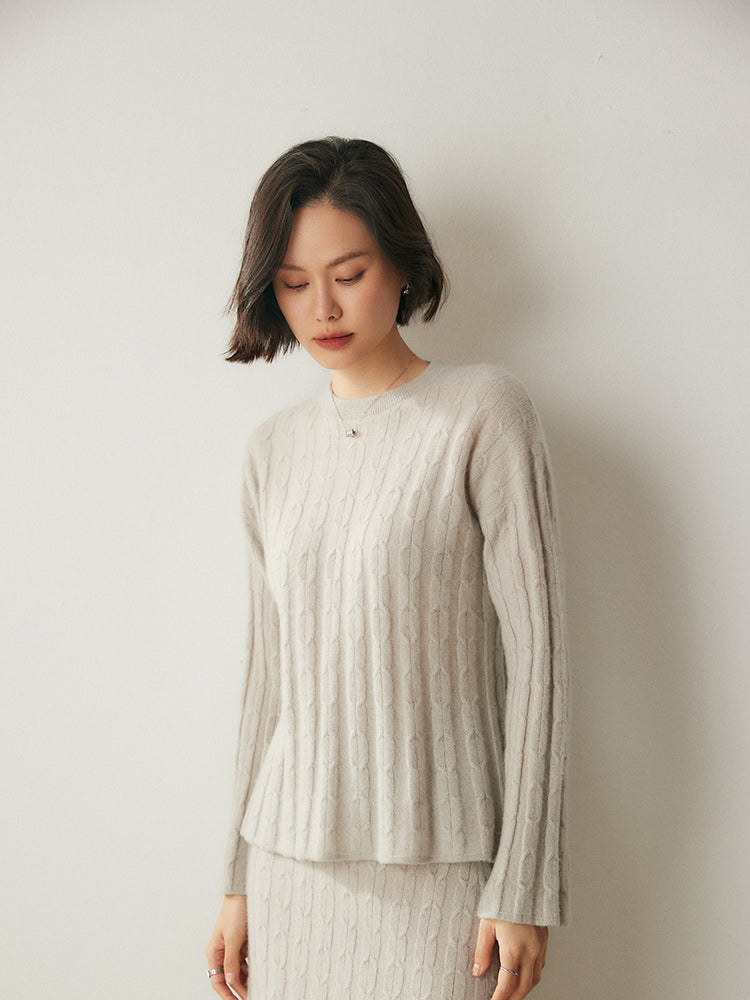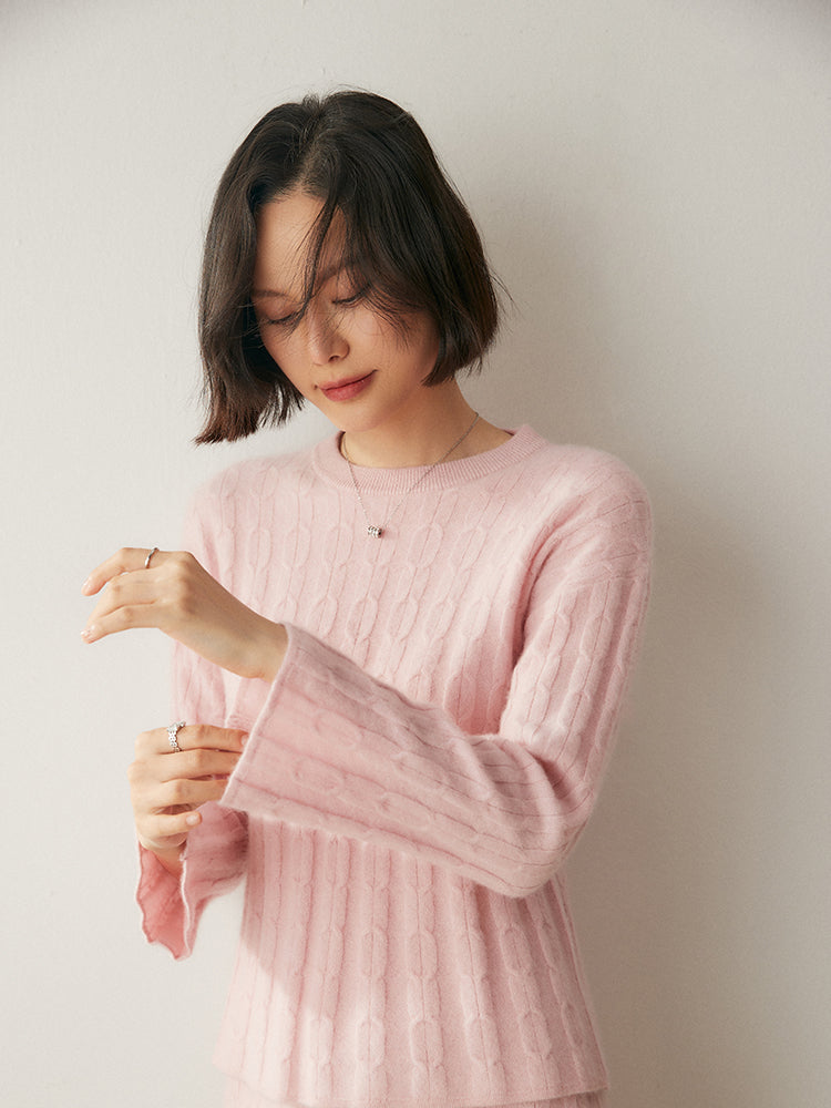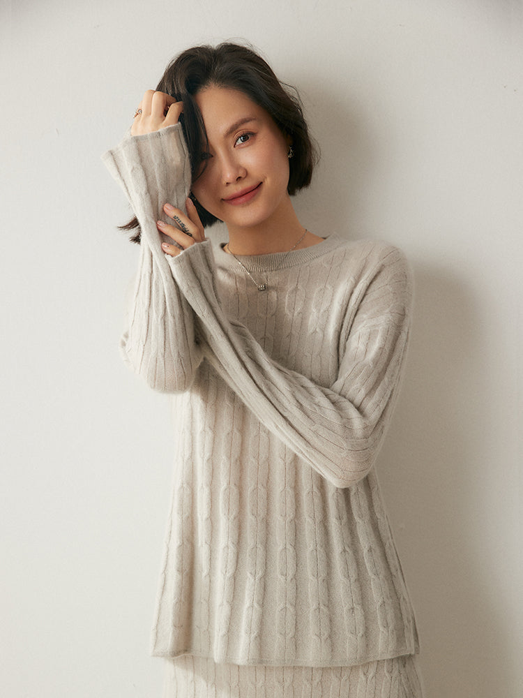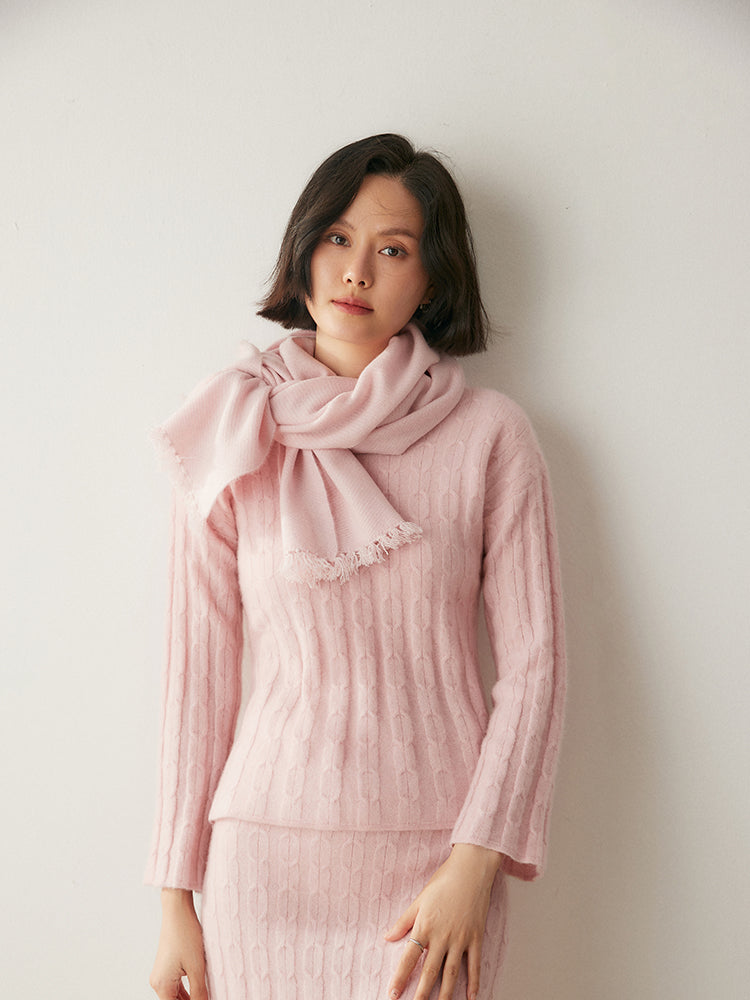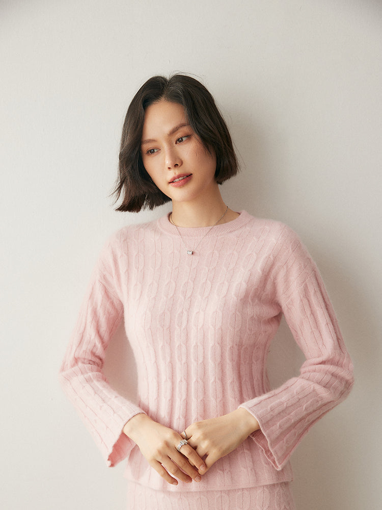 Experimenta la combinación perfecta de elegancia y comodidad con el conjunto de punto Volan Luxe, confeccionado con 35 % cachemira y 65 % lana para una sensación de lujo. El jersey de cuello redondo y la falda midi con cintura elástica están adornados con delicados dobladillos acampanados que añaden un toque de sofisticación y alegría a tu look. Su textura suave y su diseño chic lo hacen ideal para todo, desde días informales hasta ocasiones especiales. Llévalos juntos o por separado para crear estilos versátiles. ¡Una prenda imprescindible para quienes aman la elegancia natural!